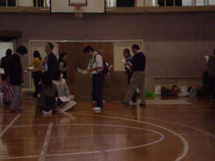 本日(11月5日)午後0時30分,下鴨中学校区地域生徒指導連絡協議会(地生連)主催の「あそびトライアル」開催に向けて,スタッフが集合しました。