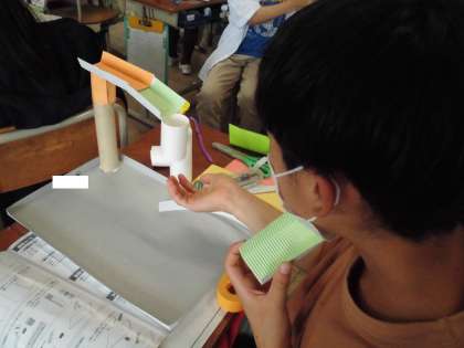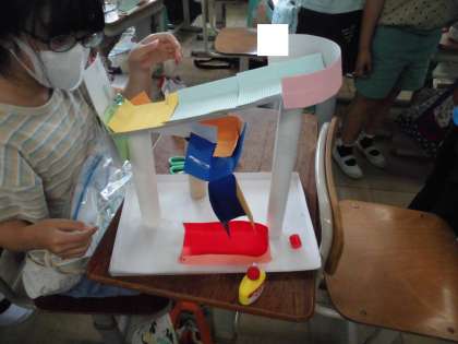 みんなが楽しみにしていた「コロコロガーレ」の学習。今日から,ビー玉を転がすコースを作りはじめました。直線コース・直角コース・やさしいカーブコースなど…子ども達は何度もビー玉を転がしてみて「なんか違うなぁ。」「位置を変えてみよう。」と,試行錯誤していました。