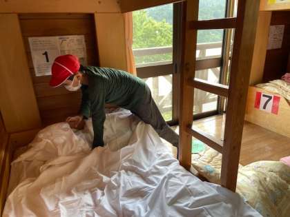 「冒険の森」の活動を終えて,宿泊棟に入りました。