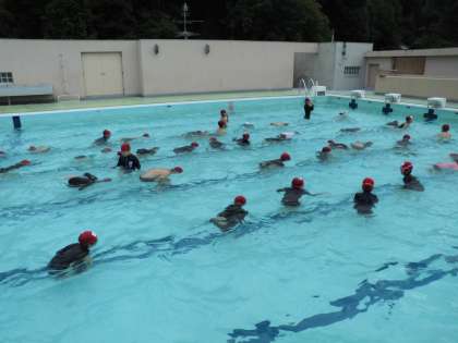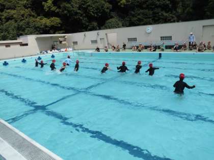 今日は,4年生になって初めての水泳学習でした。プールサイドでのきまりや並び方を確かめた後,けのびやバタ足,だるま浮きなど,水に慣れる活動をしました。久しぶりのプールに,子ども達は大喜び!話を聞くときは動きを止めるなどのメリハリも,しっかりとつけていました。
