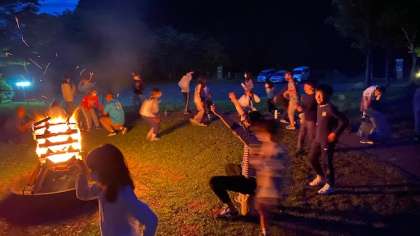 キャンプファイヤーは,レクリエーション係が盛り上げてくれました。