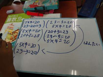 答えが正しいかどうか、グループで話し合い、確かめ方を考えています。
