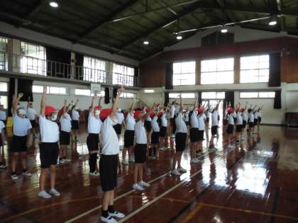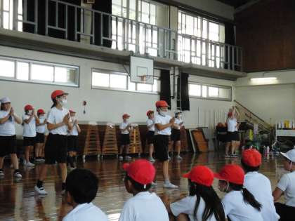 「4年生らしく、見ている人に≪伝わる≫演技・競技をしよう。」と話をしました。みんなで力を合わせて、本番に向けて練習を重ねていきたいです。
