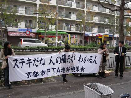 本日(12月3日)午前11時より,高野中学校において,左京中PTA人権尊重街頭啓発活動の事前学習会が開催されました。