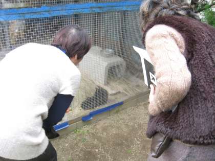 その藁をくださった方のご家族の方が,今日,地域の会合で学校に来られましたので,ウサギ小屋を見ていただきました。