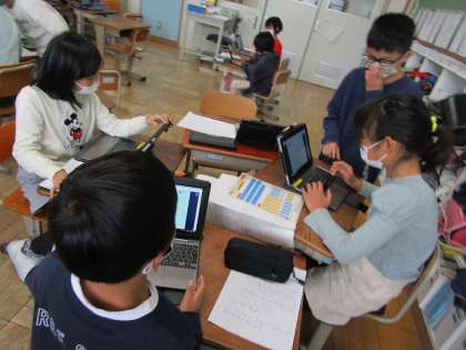 今まで調べてきたことをグループでまとめています。ロイロノートを使って,まとめています。出来上がりが楽しみです!!