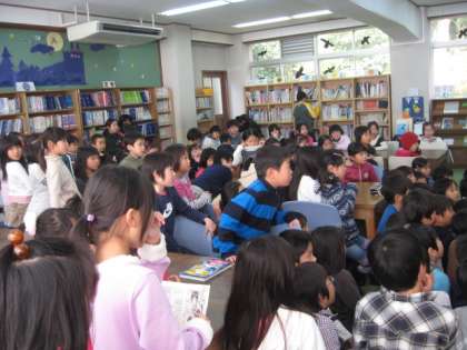全校児童308名中,120名もの児童が図書室に集まりました。