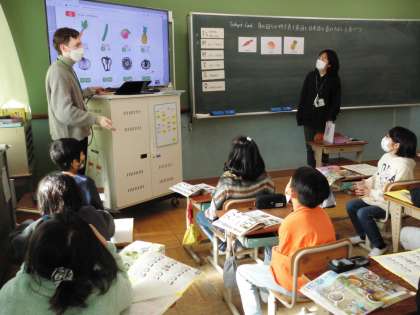 今日の外国語は…Today's Goal「 身の回りの物を表す英語と日本語〜音のちがいに気づこう」という内容でした。