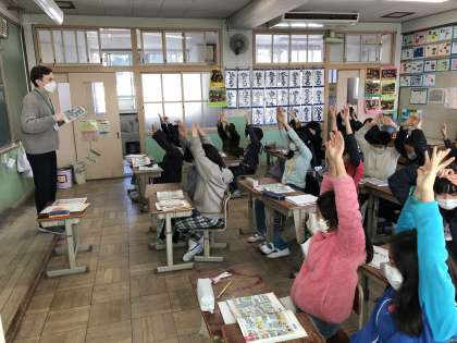 今日の外国語科では、ガレス先生と学習をしました。施設の名前などをポインティングゲームをしながら練習しました。