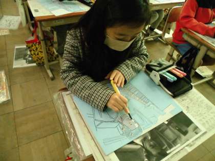 自由参観では、図画工作科「ほってすって見つけて」の学習をしました。今日は、顔や手など肌の部分を、彫刻刀を使ってほり進めました。彫る向きを工夫して取り組んでいました。
