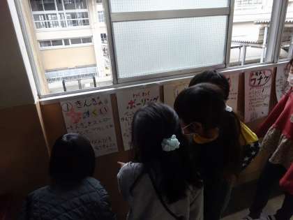 2年生が、来週開いてくれる「なかよしフェスティバル」のポスターを廊下に掲示しました。
