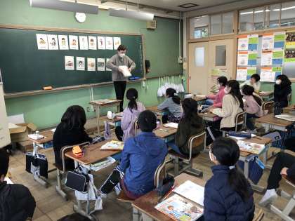 5年の外国語では、身近なあこがれの人を紹介する言い方を学習しています。昨日は、ガレス先生と一緒に学習をしました。職業や性格の言い方にもなれてきたので、紹介するときにいかしてほしいです!