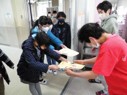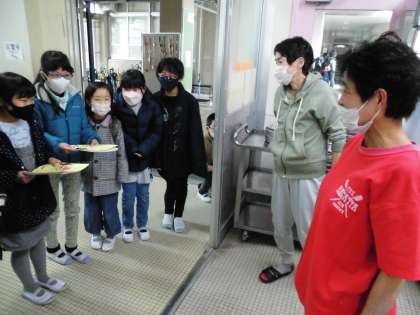 今週は,給食週間です。4年生は,毎日おいしい給食を作ってくださっている給食調理員さんに手紙を書きました。子ども達の手紙には「好きな給食とその理由」「自分たちの体のことを考えてくださっていること」「栄養バランスのよい食事がとれること」「朝早くから心をこめて調理をしてくださっていること」など,たくさんの感謝の気持ちが綴られていました。みんなの手紙は,今日,冊子にまとめて手渡しました。よろこんでくださってうれしかったですね!