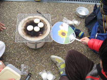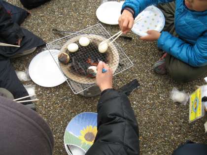 どのグループも早く上手に炭をおこすことができ,お餅もすぐに焼き始めることができました。