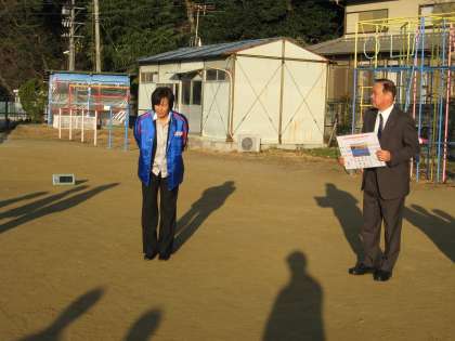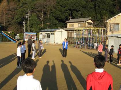色紙をいただいた後,「京都チーム」のコーチの方から,ちょうど朝の練習を終えたところの本校の陸上クラブの児童に激励していただくことができました。