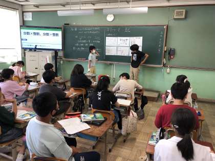 6年生の算数「分数×整数、分数÷整数」では、計算のしかたについて説明する活動をしました。面積図を使うと理解しやすいと気づいていました。