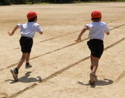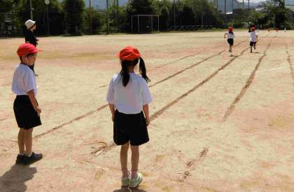 体育の時間に50m走をしました。ゴールめざして、自分のコースを一所懸命に走りました。