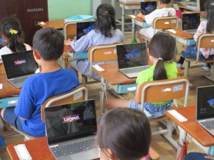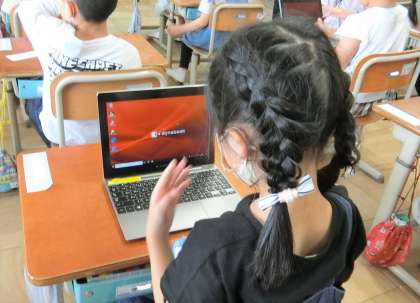 1年生は、初めてタブレットPCを使いました。電源を入れてパスワードを入力してログインをすることとシャットダウンの仕方を学びました。少しずつ扱いに慣れていきたいです。