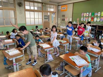 ドレミの歌では、列ごとに歌詞を決めて立ち上がって歌う遊びをしました。