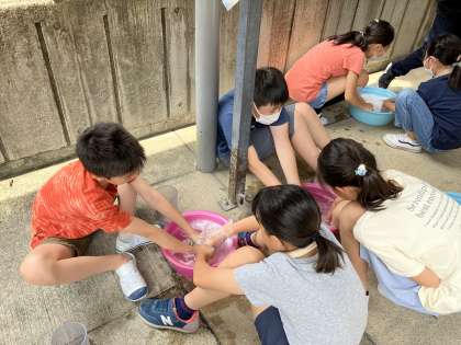 家庭科の学習で、洗濯(手洗い)をしました。タオルやハンカチが白くなると気持ちがいいですね!