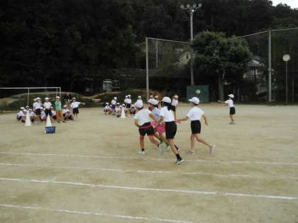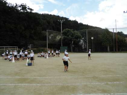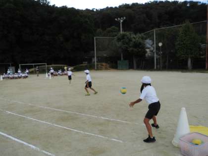 今日の体育は、運動フェスティバルで行うボール送りを実際にやってみました。グループで息を合わせないとボールをうまく送ることができません。子どもたちは、これから練習頑張るぞと意気込んでいました。