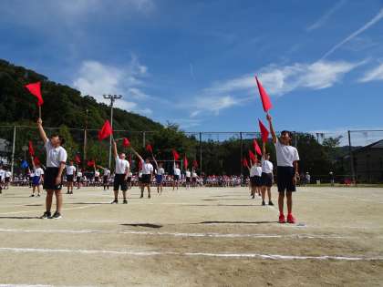 本日は、小学校生活最後の運動フェスティバルでした。6年生は運動フェスティバルを最高の思い出にするために、また松ヶ崎小の6年生としての誇りのために、練習も準備も一生懸命に取り組みました。サポートスタッフの活動も、影の立役者としてしっかりと行事を支えてくれました。6年生がいたからこそ、下級生も頑張れた運動フェスティバルになりました。組体操の一人技、フラッグの集団演技は、ミスができないプレッシャーがあったと思いますが、練習してきたことを信じ、立派にやり遂げてくれました!