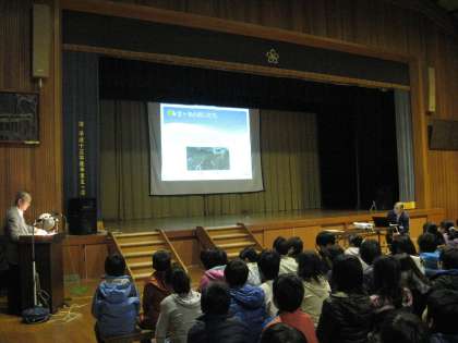 その事前学習が,4年生以上の児童を対象に,今日の2校時に本校講堂で行われました。