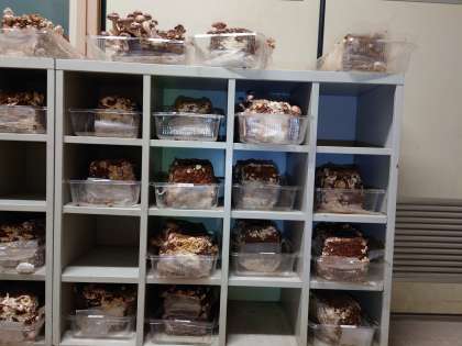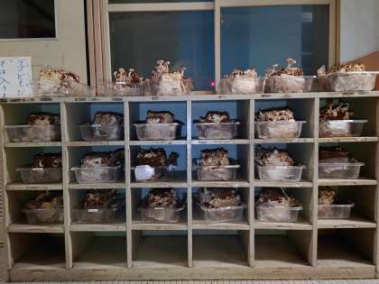 いったいおがくずの中の何を栄養としているのでしょうか。菌糸にしかわからない事情があるのだと思われます。何しろ、マツタケはまだ、栽培方法が確立されていないそうですから。そう考えると「しいたけ」のなんとフレンドリーなこと。胞子だけでなく、5年生の子どもたちに話題をふりまいているのですから。