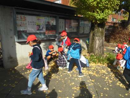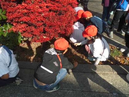 落ち葉の花束を作ったり、金魚や河童に見立てた葉を集めたりしている子も…