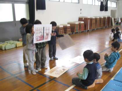 今日は,地域にある聖光幼稚園・松ヶ崎保育園の年長さんのお友だちが,松ヶ崎小学校に来てくださいました。