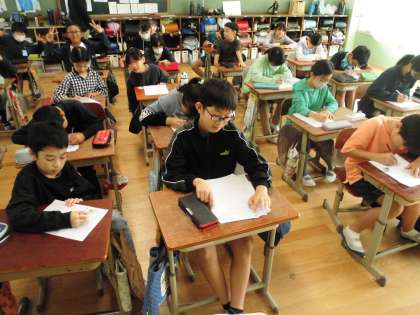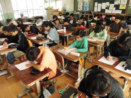 今週初めに収穫し、おいしくいただいたシイタケをレポートにまとめました。菌床ブロックとの出会いから、「いただきます!」までの4場面を切取り、4コマ漫画と解説でまとめました。みんな思い思いのまとめをしていて、「早く友達のが見たい!」とレポートの交流を楽しみにしています。