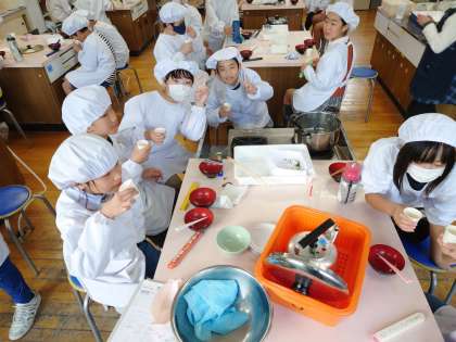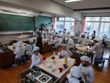 第5学年家庭科「食べて元気!ご飯とみそ汁」において、昆布だし・合わせだし(昆布とかつお節)・吸地(合わせだしと調味料)を味わい、食の大切さ、伝統文化が育んできたものを体験的に学ぶ活動の一貫で実施しました。