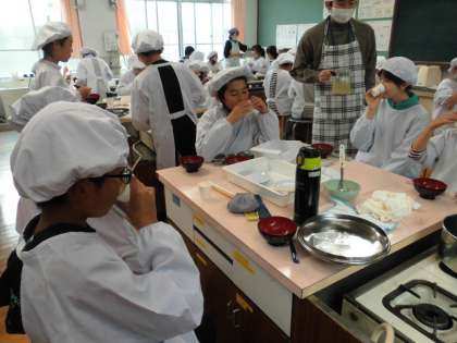 それに合わせて、和食文化の学習の一つ「だし」をいただきました。