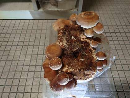 1枚目 下から2段目の菌床を出してみました。てっぺんがひっかかって出にくいので念のためロッカーの上、一番上の左に移動。明日、5年生が見て勝手に動いたと驚かないように記録。