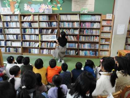 今日は、中間休みに図書ボランティアさんに低学年の読み聞かせがありました。