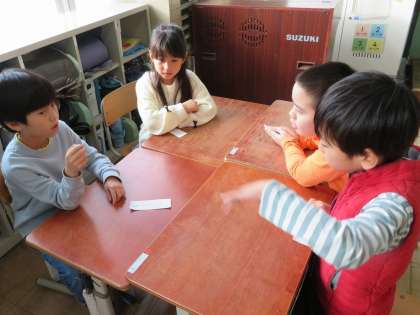 今日は、見つけた「はんたいのいみのことば」を使って友達にクイズを出しました。