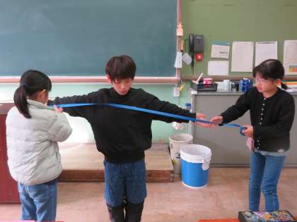 1mものさしを使って、友達と協力して活動しました。