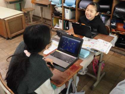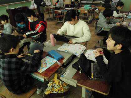 今日は、野菜の言い方に慣れたり、欲しいものを尋ねたり答えたりする活動をしました。ICT支援の先生にロイロノートでツールを作成していただき、それを活用しました。楽しみながら、英語の表現にも慣れ親しむことができました。
