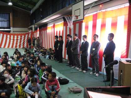 一人一人,順番に自己紹介してくれました。初対面の全校児童の前でしたが,とてもしっかりできました。