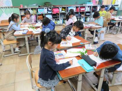 生活科に時間にサツマイモの苗を観察しました。