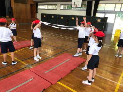 3年生は、体育科「マット運動」の学習をすすめています。今日は、タブレットを活用したり、学びの場を工夫したりして、技の完成度を高めていました。