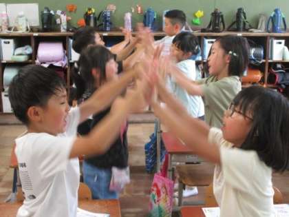 友達と音楽に合わせて踊ったり、リズム打ちをしたりしながら楽しく活動しています。