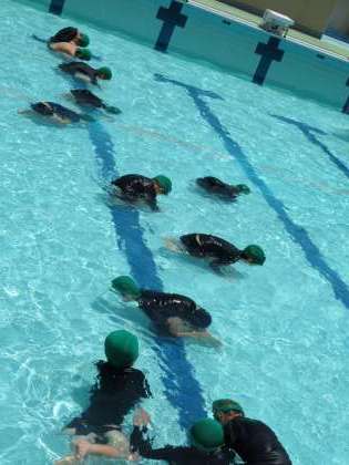 40cmぐらいの水位で、いろいろな水慣れ遊びをしました。