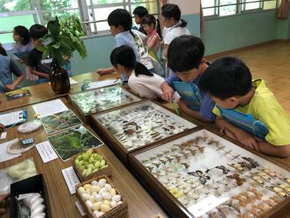 また、色んな昆虫やヤママユの標本や繭を見せていただき、興味深く観察していました。