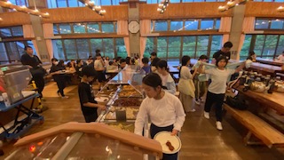 バイキングで自分の食べられる量を考えて盛り付けています。