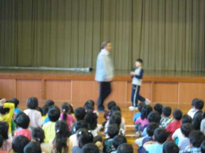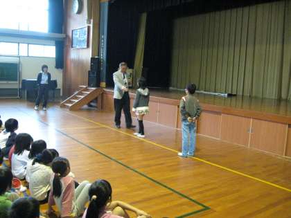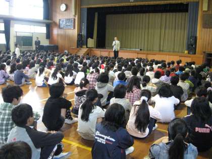 これに先立ち,最近の交通事故にふれ,例えば,青信号になったからといってすぐに渡るのではなく,自分の目で確かめてから渡るなど,自分の身は自分で守っていくことの大切さを,全校児童に訴えました。