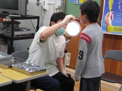 学校歯科医の先生に,むし歯や歯並び,かみ合わせ,歯肉の状態を診ていただきました。