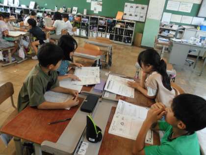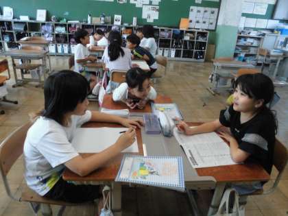 夏休みに取り組んだエコライフチャレンジを校内に広めようと計画を立てました。広めたいエコライフを決めてグループで集まり、どうやって広めるか考えました。