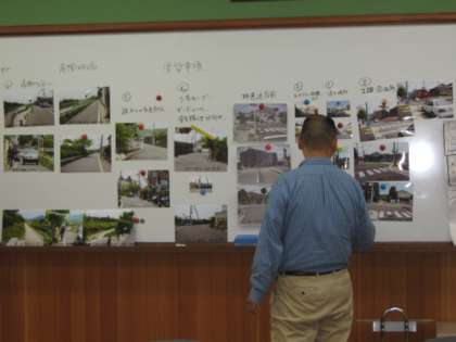 PTAの本部のみなさんと昨年度と本年度の地域委員長さん副委員長さん,地域の代表者の方に来ていただき,通学路の交通安全において危険だと思われる箇所の位置や状況を確認しました。