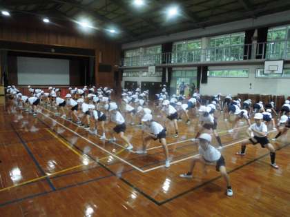 運動フェスティバルの団体演技「ソーラン節」の練習を頑張っています。今日は隊形移動の練習をしました。踊りながら移動するのは難しいですが、みんなの心が一つになるように頑張ります。